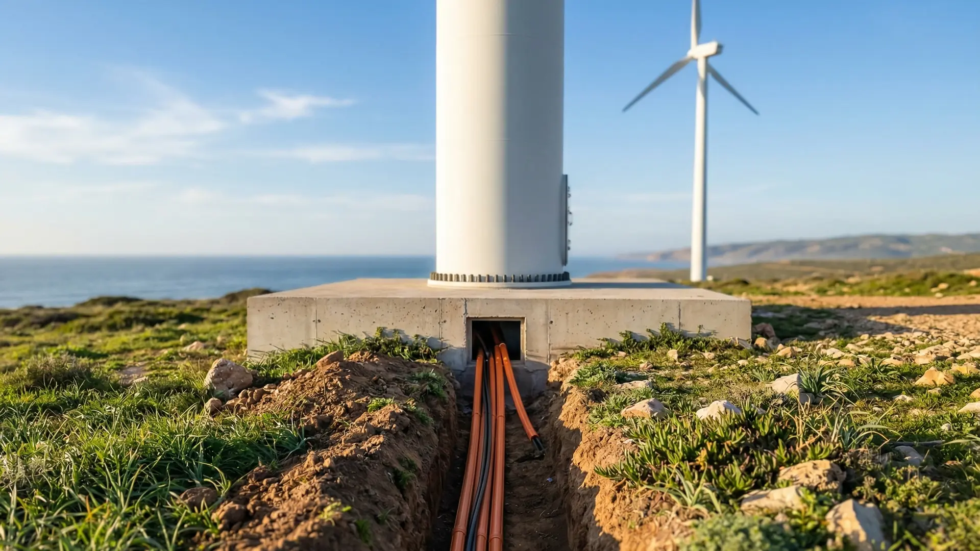Installation du réseau de fibre optique pour le monitoring de 12 éoliennes, en partenariat avec Maroc Wind, filiale d'Innovent.